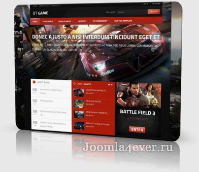 Высококачественный шаблон BT Game предназначен для организации игровых веб-сайтов на Joomla версий 3.х и 2.5х, созданный молодой студией BowThemes. При помощи превосходно исполненного дизайна, дополненного красивым слайдером контента, шаблон позволяет создать функциональный Интернет-ресурс с обзорами новинок игровой индустрии. Комфортную и максимально быструю работу с контентом сайта обеспечит включенный в состав сборки шаблона мощный компонент К2. Шаблон BT Game создан на базе многофункционального Фреймворка Т3 версии 3, обеспечивающего хорошую оптимизацию и гибкую настройку ресурса. Плюс ко всему, шаблон содержит 20 дизайнерских стилей и 6 цветовых схем оформления, имеет адаптивные функции, хорошую оптимизацию и хорошо совместим со всеми веб-обозревателями.