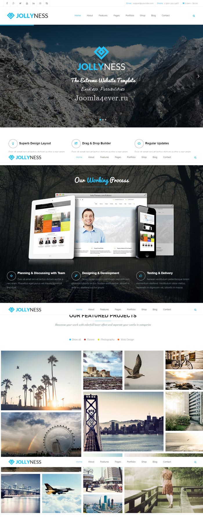TemPlaza Team is pleased to announce that New Responsive Joomla Template is going to be released; Jollyness Template. It is clean and modern design, which makes your site become more outstanding. This is a multi-purpose template which suits for all needs; Blog, Personal, Business, Cooperation site. With Jollyness, you can showcase your works with perfect effect and separate your works in categories in an easy way. Jollyness is a Responsive Joomla Template . It supports Bootstrap, your template will adapt automatically to the screen size of the device and display all the content in an intuitive and simple way.