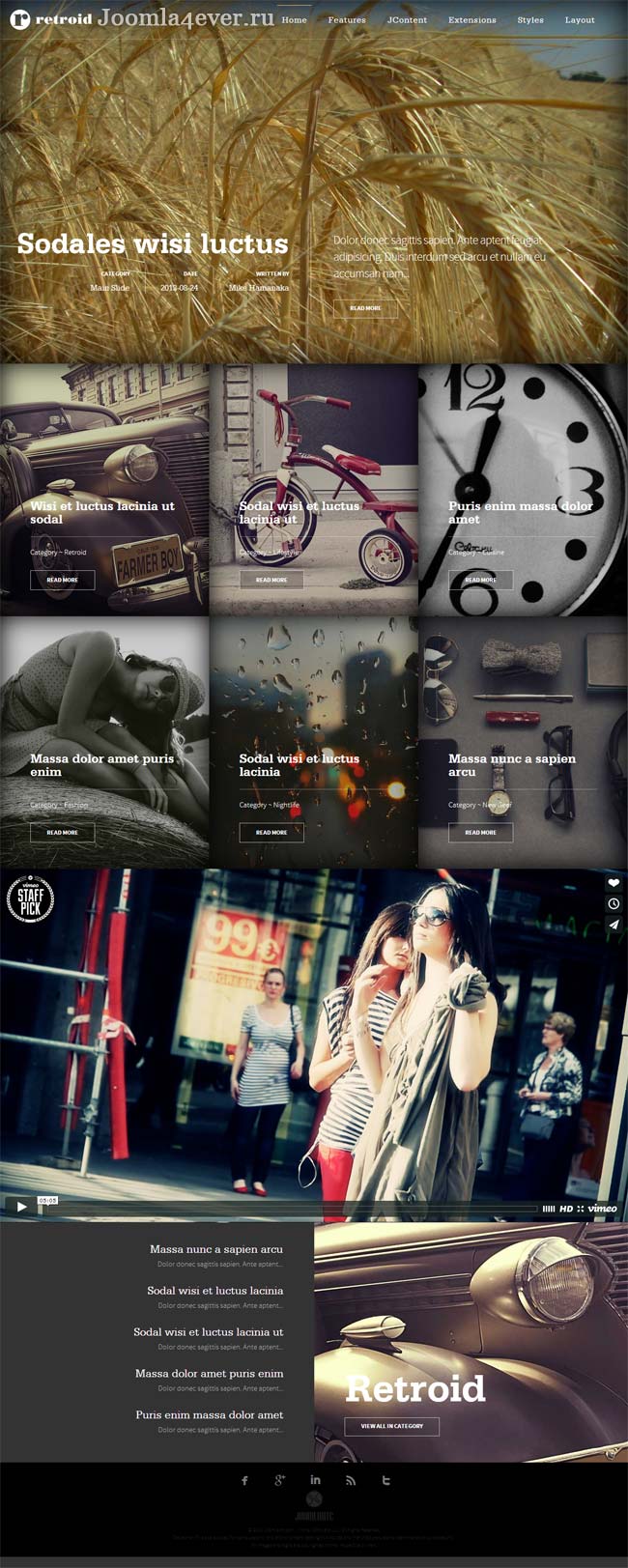 Команда разработчиков JoomlaXTC выпустила ещё один шаблон JXTC Retroid, который даёт возможность представлять информацию для пользователей на сайте в очень оригинальном и стильном виде. Необычный внешний вид и разработка, учитывающая последние веяния тенденций веб-дизайна характеризуют JXTC Retroid. Реализацию интересных эффектов на сайте позволили возможности технологии CSS3, используемые в шаблоне. Быстрая настройка требований к шаблону возможна благодаря "XTC Framework". С целю увеличения возможностей в сборку добавлены отличные студийные расширения: , K2, Kunena, K2 Comment Wall,и Socializer Wall, Deluxe News Pro. JXTC Retroid применим для сайтов с совершенно различной тематикой.