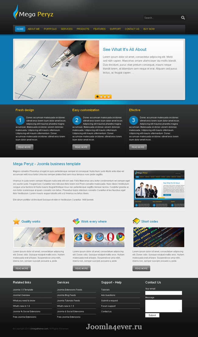 OT Peryz – модный шаблон для сайтов на Joomla 2.5х, который отличается особой универсальностью, создан профессиональной студией OmegaTheme. Шаблон функционирует на студийном фреймворке Solid Framework, который содержит мощное ядро, обеспечивающее универсальность и функциональность, дополняющую стандартные элементы. В состав сборки макета интегрированы 15 модульных положений, удобный менеджер настроек, к тому же, у шаблона великолепно прокомментированы CSS и PHP. OT Peryz поддерживается практически любыми браузерами.