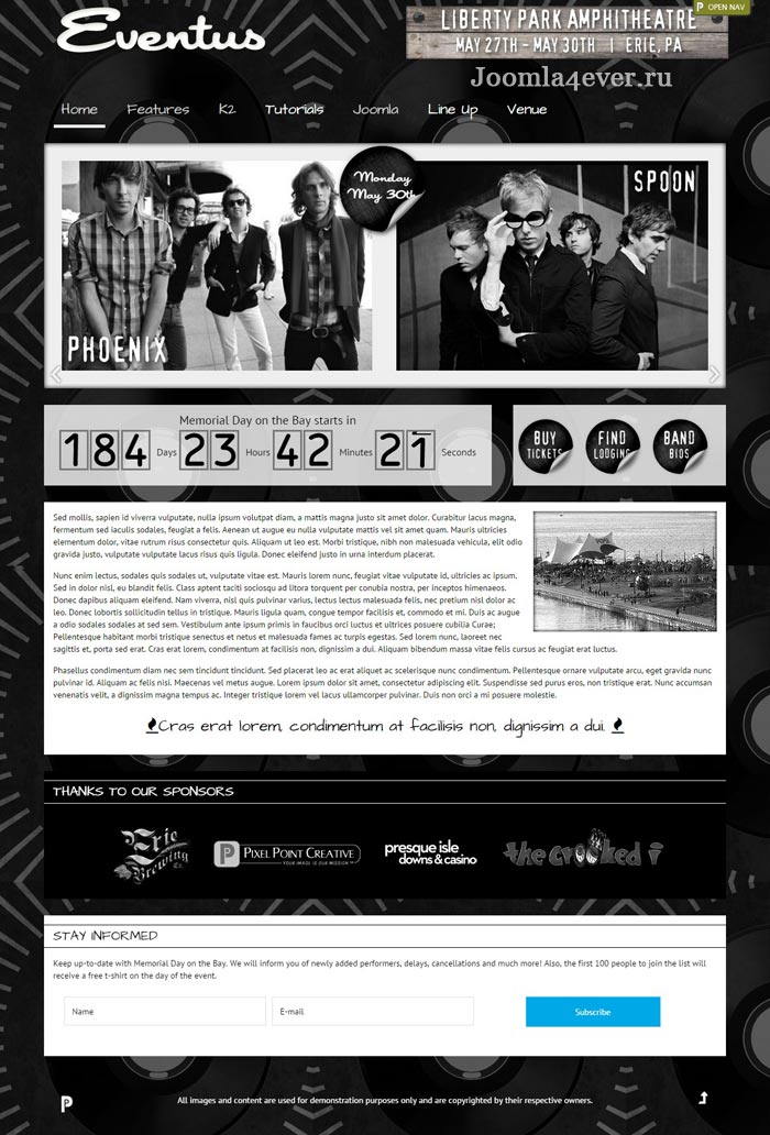 Eventus is focused on anyone wanting to make an event website. It is also suitable for festivals, musicians and artists.