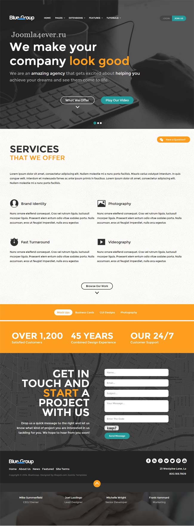 S5 Blue Group - отличный вариант для тех, кто ищет шаблон, подходящий для создания сайта с выводом всего дизайнерского агентства на одной странице. Новинка от студии Shape5 поможет справится с этой задачей. Шаблон достаточно универсален, так как содержит множество полезных расширений, способных выполнять самые разнообразные функции. В шаблон включен модуль S5 Contact Popup, созданный для того, чтобы поднять связь пользователей сайта с администрацией на абсолютно новый уровень. Поставляемый модуль включает в себя множество настроек и имеет прямую интеграцию с reCaptcha, поэтому он очень полезен для ресурса и связанного с ним бизнеса. S5 Blue Group также предусматривает отдельные страницы с информацией о команде сайта, людях, работающих в коллективе предприятия, которому посвящен сайт. Также отдельная страница для создания портфолио, с предусмотренной возможностью добавлять фотографии сотрудников и подробную информацию о них.