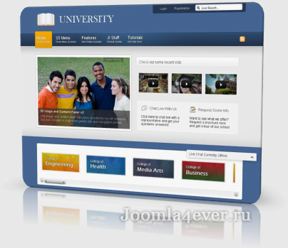 S5 University — великолепный шаблон, от всемирно-известной дизайнерской студии «Shape5», имеет 5 цветовых схем, и 30 модульных позиций. Имеет смысл сказать, что шаблон довольно-таки хорошо оптимизирован, поэтому не будет сильно загружать сервер, а загрузка страниц может только радовать. Как уже ясно по названию, шаблон замечательно подойдет для сайтов образовательных учреждений. Благодаря встроенным инструментам, которые находятся в панели управления администратора, шаблон можно легко изменять, редактировать ширину и многое другое. Шаблон тестирован на Joomla 1.5х – 2.5х - 3.x, полная совместимость.
