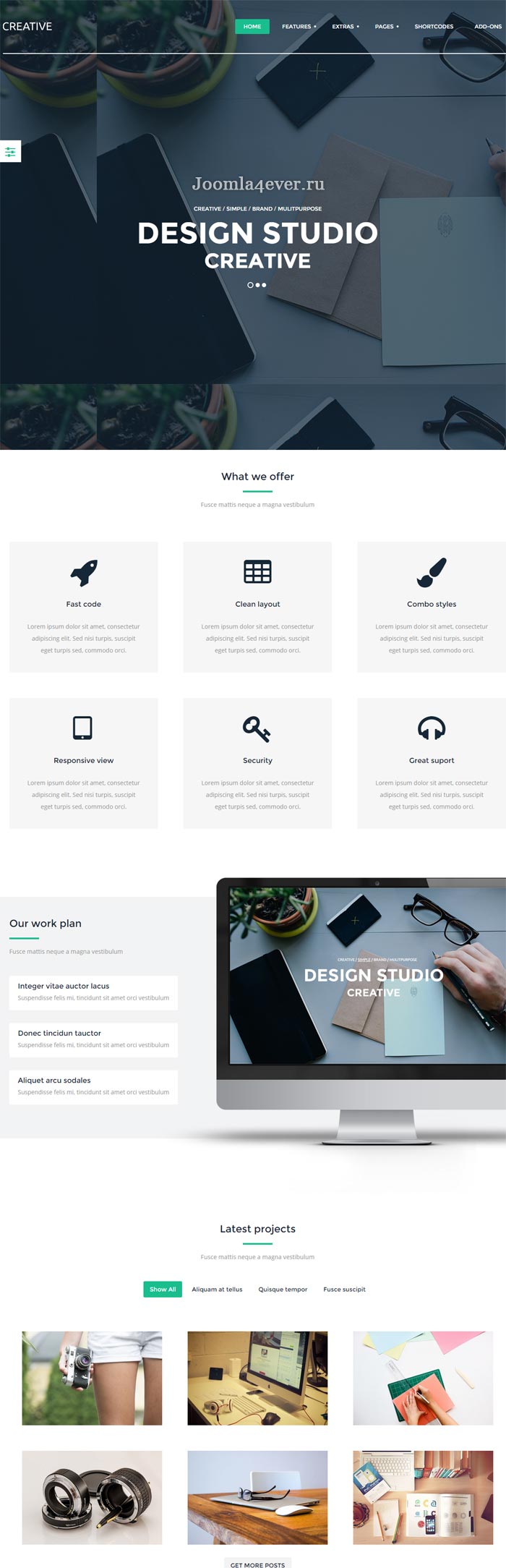Second template for the month of April is Creative. New and shiny designer web studio template that can be used for just about any web concept. Creative comes with full or boxed layout switch, 5 predefined color styles, special scroll effects, advanced hover effects, 10 module styles, extended typography and all YJSG Joomla Template framework built in features. Advanced template color switcher and grid background options will let you create unlimited template styles. Creative template demo features following Joomla extensions; YJ News Pop, YJ Module Engine, YJ Plans Extended and K2. We have also included a special articles category that can be used to present your team members. So if you need to present your product, ideas or you are just about to start a new blog, Creative Joomla Template is made for you!