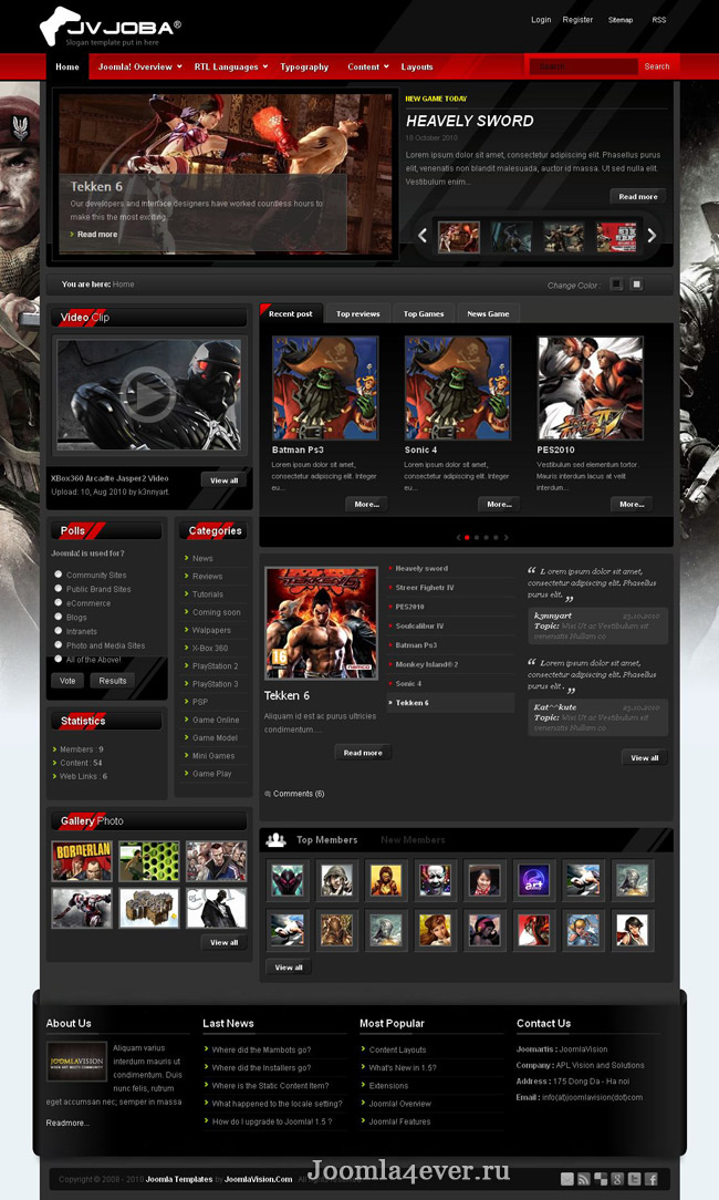ZT Joba обновленный шаблон 2010 года для новой версии Joomla 2.5х от дизайнерской студии ZooTemplate. Разработан шаблон на базе трех колоночного дизайна, обладает быстрым и современным дизайном, оснащается 31 модульной позицией. За счет полной интеграции с JComment и JomSocial шаблон использоваться может для создания специализированных порталов. Помимо этого, поддерживает ZT Joba и студийные решения, к ним относятся: ZT Tabs (удобный и гибкий модуль отражения разнообразной информации или других модулей), ZT Twitter (благодаря нему отображается необходимое число записей на стене на базе Twitter API), ZT Contact Pro (функциональный и простой модуль обратной связи на ресурсе), ZT Headline (слайд-шоу модуль с разнообразными эффектами). Шаблон отлично подойдет для создания геймерского портала, где можно скачать популярный StarCraft 2 Heart of the Swarm, скачать полную версию отсюда mygamecore.com .